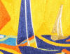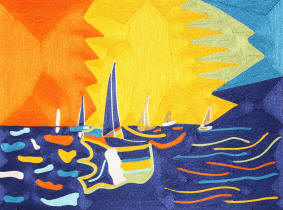 blue colors woven to create sailboatsin the
